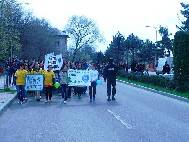 În cadrul săptămânii „Școala altfel”, joi 10 aprilie, elevii și profesorii implicați în programul „Patrula de Reciclare”, au organizat un marș eco pentru a promova mesajul că reducerea consumului de energie şi buna gestionare a deşeurilor sunt foarte importante dar şi pentru a-i mobiliza pe oameni să colecteze deșeuri electrice și electronice.