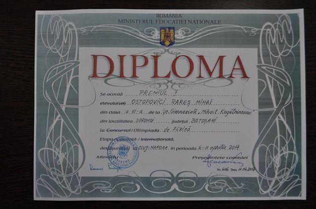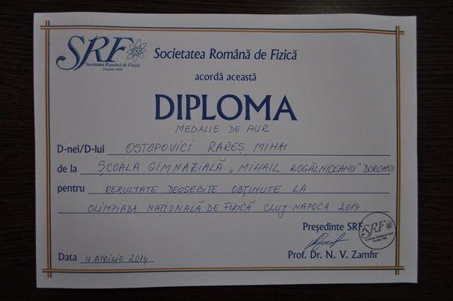 Faza națională a Olimpiadei de Fizică s-a desfășurat în perioada 6-11 aprilie 2014 la Cluj-Napoca, anul acesta fiind a 50-a ediție. Ostopovici Rareș, elev în clasa a VI-a A, coordonat de către profesor Cazacu Angelica, a obținut premiul I, Medalie de aur și diplomă de excelență pentru cel mai tânăr olimpic.