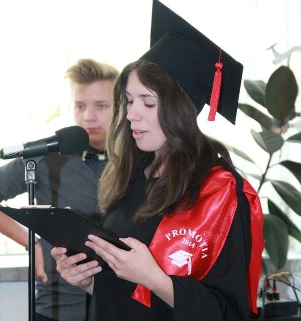 Părintele Director Constantin Muha, în cuvântul său, a felicitat  toți absolvenții, urându-le succes la examenele de Bacalaureat și Admitere la Facultate. Totodată, a menționat și faptul că anul acesta, pe lângă clasa de Teologie Pastorală, definitivează studiile liceale și prima clasă cu profil Bilingv, specializarea Română-Engleză. În pofida greutăților care au fost la început în privința acestui profil, acestea au fost depășite și eforturile depuse de profesori și elevi deopotrivă, au fost încununate de succes.