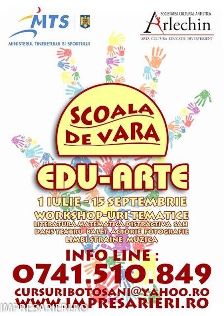 Anul acesta, elevii de liceu dispun de gratuitate la cursuri. Aceştia mai au încă timp două săptămâni să se înscrie, să opteze pentru cursuri şi să ceară detalii organizatorilor. Programul include ateliere de lucru de la 8 a 12 pe diferite teme: literatură şi comunicare, matematică distractivă, limbi străine, ştiinţe ale naturii, dans, sport, desen, muzică, fotografie, şah. Activităţile se desfăşoară într-o atmosferă destinsă, diferită de cea a şcolii, prin joc, în aer liber şi includ drumeţii în împrejurimi, excursii tematice. Societatea Culturală Arlechin pune la dispoziţie 5 lectori şi spaţiile din incinta Casei Tineretului, Botoşani. Proiectul se derulează în parteneriat cu Inspectoratul Şcolar Judeţean, Centrul Judeţean de Voluntariat Botoşani şi Colegiul Naţional M. Eminescu, Botoşani. Încheiată la sfârşitul lunii august, Şcoala de vară Arlechin va puncta cele mai frumoase momente la petrecerea de final de la Agafton, în tabăra Codrii de Aramă.