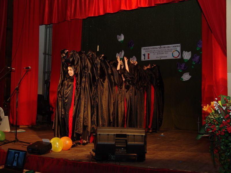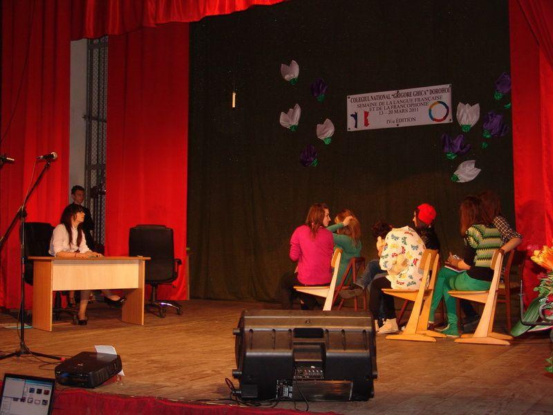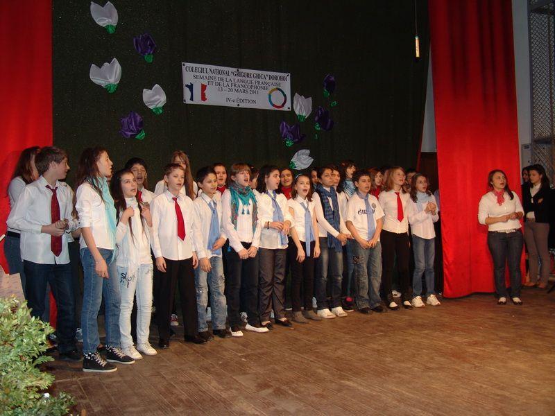 Deşi cu o întârziere de aproape o săptămână din cauza grevei din învăţământ, spectacolul organizat de Colegiul Naţional „Grigore Ghica” cu ocazia Săptămânii limbii franceze şi a francofoniei a dovedit că îmbinarea între cântece, dans, piese de teatru şi concurs este una ideală pentru iubitorii acestei limbi. Coordonatorul acestui proiect a fost prof. Iulia Stoica, ajutată de prof Claudia Jâşcanu şi bibliotecar Mariana Hluşcu în colaborare cu Şcoala nr.8 „Mihail Kogălniceanu.”