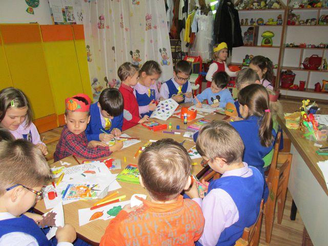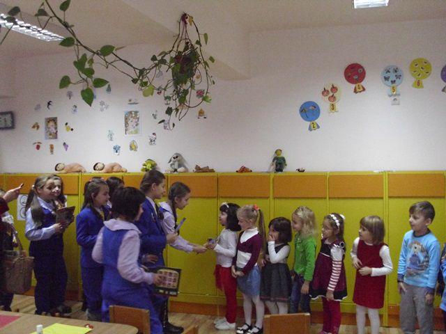 Elevii au desfășurat jocuri de socializare cu preșcolarii, pe care i-au ajutat să realizeze coronițe pentru Carnavalul Toamnei. Lucrând în echipă, activitate practică a avut un impact pozitiv asupra tuturor copiilor.