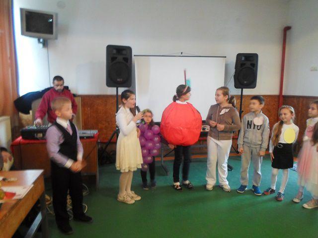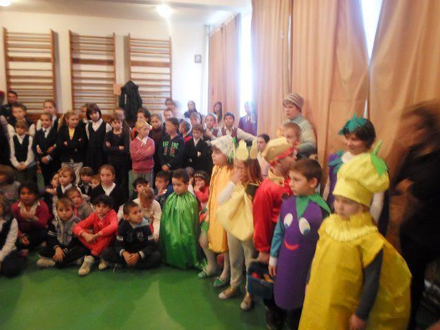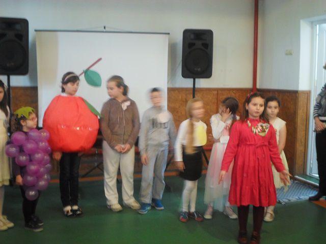Elevii au surprins importanţa fructelor şi legumelor într-o scenetă intitulată „La noi în bucătărie”, au recitat poezii, apoi au încântat spectatorii cu o frumoasă paradă a costumelor, reprezentând fructe şi legume. Activitatea s-a încheiat cu servirea unui măr gustos şi sănătos.