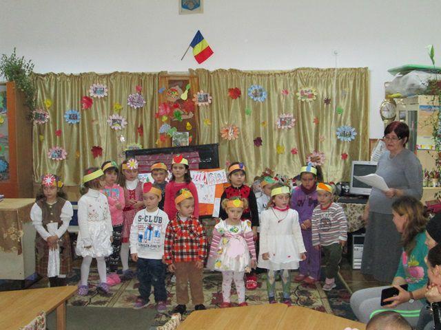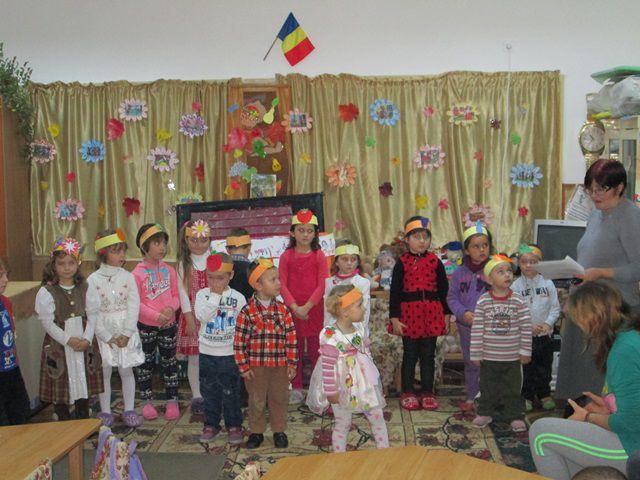 În cadrul activității intitulate „Carnavalul toamnei” d-na ed. împreună cu preșcolarii pe care îi coordonează au desfășurat un moment artistic ce a constat în recitarea de poezii și o scenetă pe roluri: „Legume și fructe”.