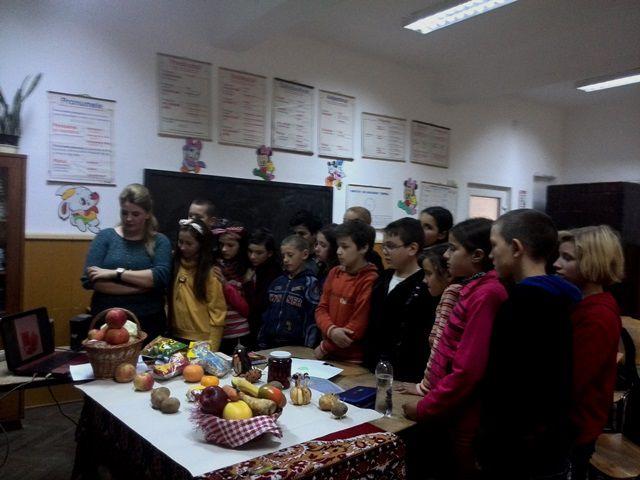 A realizat împreună cu elevii clasei a V – a A planșe cu mesaje, respectiv semnale de alarmă asupra alimentelor ce ne distrug sănătatea. Plecând de la sintagma Mai multă culoare în farfurie, elevii au putut viziona filmulețe ce cuprindeau un plan alimentar sănătos pentru copii, mai exact un plan care include trei mese principale care să conţină o varietate de alimente.