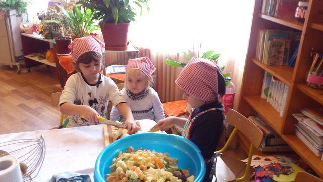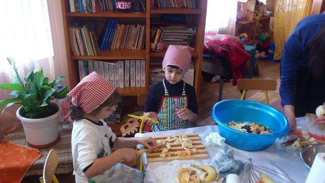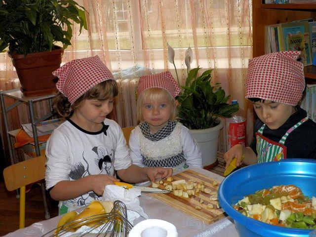 Si ce poate fi mai minunat decat să vezi mânuțele harnice ale fetițelor străduindu-se să facă o salată de fructe sau să orneze tartine iar ale băieților să asambleze figurine din legume?