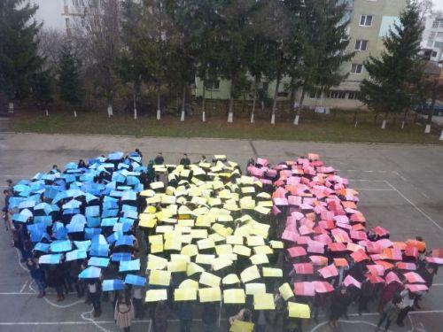Botoşănenii au început deja să sărbătorească Ziua Naţională a României. Nu au mai aşteptat ziua de 1 decembrie şi s-au mobilizat pentru a aduce un omagiu ţării în care trăiesc. Peste 500 de elevi de la Colegiul Naţional ”Mihai Eminescu” din Botoşani, împreună cu doi profesori au pus la punct un plan îndrăzneţ. Au realizat în curtea şcolii o hartă uriaşă a României Mari pe care au ”umplut-o” cu trupurile lor. Deasupra capului au ţinut cartoane desenate în culorile drapelului românesc. A rezultat cea mai mare hartă ”vie” a României dedicată zilei de 1 Decembrie.