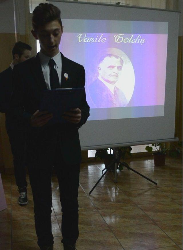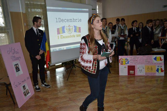 Elevii clasei a X-a F au organizat un joc de rol în care au recreat atmosfera din ziua de 1 Decembrie 1918 de la Alba Iulia, elevii personificând marii oameni de stat care au participat la Marea Adunare de la Alba Iulia şi au prezentat discursurile unor personalități precum, Ştefan Cicio Pop, Gheorghe Pop sau Vasile Goldiş şi au citit fragmente din Rezoluţia de la Alba Iulia (coord. Prof. Muraru Bogdan).