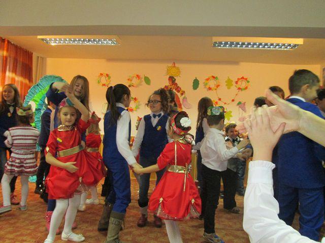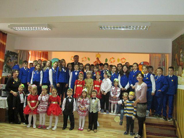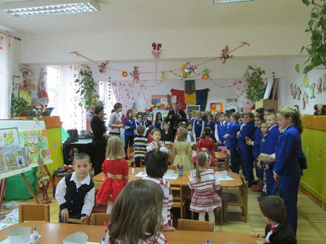 Mare a fost surpriza celor mici când la intrare în sala de grupă, școlarii i-au îmbrățișat cu căldură, oferindu-le cadouri și ecusoane tricolore, anunțându-i astfel că bucuriile unui alt anotimp abia încep. Școlarii le-au explicat celor mici că ecusonul oferit reprezintă o onoare și o mândrie pentru români și să țină minte că nicăieri în lume nu se sărbătorește mai frumos ca aici. La noi, fiecare anotimp are rostul lui, și oamenii se bucură de tot ceea ce Dumnezeu a creat pentru ei: pământul țării, natura, anotimpurile. Cei mici și-au încheiat spectacolul în aplauzele școlarilor, cântând: