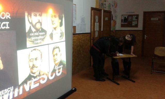 Momentul festiv a fost marcat prin desfăşurarea unui concurs de cultură generală care a cuprins cerinţe referitoare la viaţa şi activitatea poetului. S-a optat pentru realizarea a două echipe a căror membri au fost elevii claselor V-VIII (câte un reprezentant al fiecărei clase în fiecare grupă). Aceştia au fost jurizaţi de către un profesor din aria curriculară Limbă şi comunicare, precum şi de alţi colegi neimplicaţi activ în realizarea acestui eveniment. La final, echipa câstigătoare a fost premiată. Tehnica modernă a ajutat în crearea atmosferei romantice prin prezentarea unui material power point susţinut de una dintre elevele şcolii. Bogata activitate de corespondenţa a geniului literar nu a fost trecută cu vederea, fiind lecturată una dintre scrisorile adresate prietenilor.
