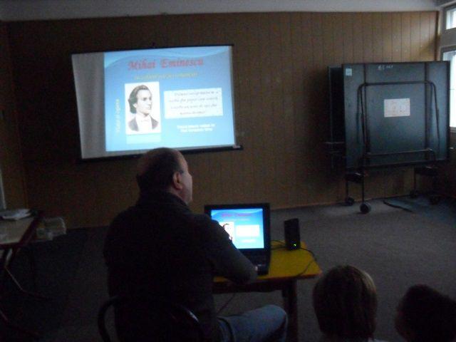 Activitatea desfășurată joi, 15 ianuarie 2015, „Pe urmele lui Eminescu” a debutat cu o prezentare power-point a vieții și operei poetului național. A urmat un scurt moment poetic interpretat de elevi din clasa a II a care au recitat poeziile „Ce te legeni” „Somnoroase păsărele” „La mijloc de codru des”, fiind răsplătiți cu aplauzele asistenței.