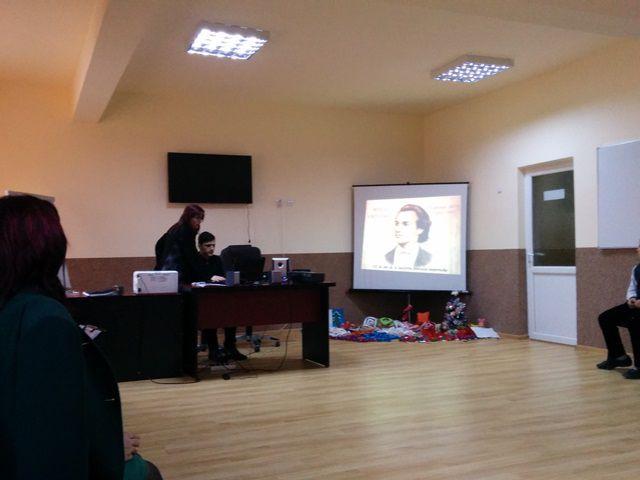 Activitatea a debutat cu o prezentare power-point despre viața și opera poetului. A urmat un scurt montaj literar-artistic, prezentat de elevii claselor IX-XII de la Seminarul Teologic „Sf. Ioan Iacob”, apoi împreună cu elevii de la Liceul Tehnologic Special „Ion Pillat”, au transpus în culoare câteva dintre versurile poetului, demonstrând talentul și prețuirea pentru creația eminesciană.