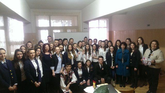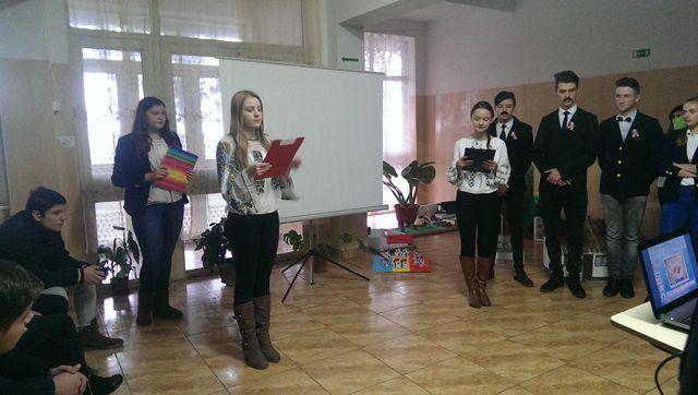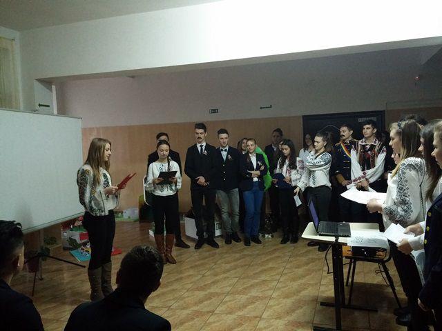 Intitulat „Unire în cuget şi simţiri”, proiectul a cuprins un colaj de activităţi alcătuit dintr-o prezentare power-point „Unirea Principatelor Române”, sceneta „Moş Ion Roată şi Unirea”, un moment poetic şi un program de cântece patriotice. Totul a culminat cu „Hora Unirii”, în care au fost antrenaţi toţi cei prezenţi. Realizatorii acestui program au fost elevii clasei a X-a F coordonaţi de profesorii Lidia Baroi, Carmen Agrăpinei şi Bogdan Muraru.