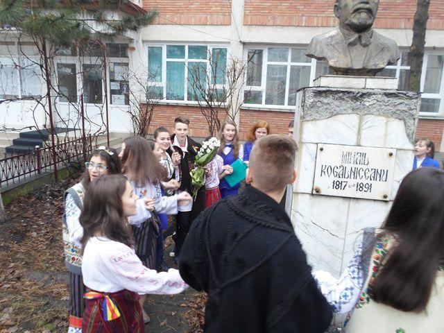 Manifestările s-au încheiat într-o atmosferă de înălţător entuziasm patriotic, elevi şi dascăli cântând împreună hora de suflet a neamului românesc. În semn de omagiu, s-au depus flori la bustul marelui istoric Mihail Kogălniceanu ce străjuieşte obştea gimnaziului ce-i poartă numele.