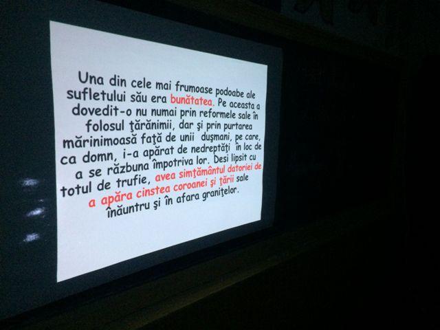 · „O lecţie de istorie în versuri” – scenetă istorică ce doreşte să surpindă una din calităţile marelui domnitor român – înţelepciunea.