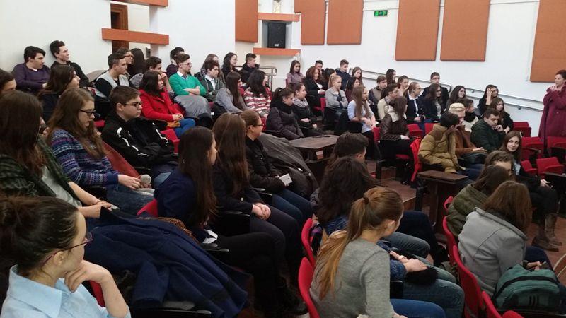 În aula colegiului, elevi de clasa a IX-a și a X-a, alături de președintele C.Ș.E., Stredie Robert și invitații acestuia, prof. Cucoreanu Gretti și prof. Pavel Daniela, au discutat despre ce înseamnă o relație la vârsta lor, cum trebuie să te comporți în anumite situații și au dat soluții la scenariile propuse de organizator. Au primit premii pentru cele mai multe intervenții și cea mai bună definiție a cuvântului ”relație”.