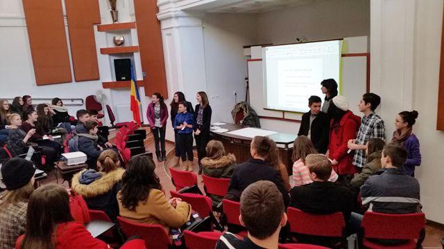Aceștia au urmărit o prezentare PPT și un film, au discutat despre istoricul drepturilor copilului, despre ce înseamnă a avea un drept, unde apar scrise drepturile copiilor, o clasificare a acestora, care drepturi trebuie neapărat reținute, care sunt organizațiile care apară drepturile copiilor. Au analizat câteva texte pentru a descoperi ce drepturi le-au fost încălcate copiilor, s-au implicat în jocul „Copil fericit sau trist?”, au discutat despre dreptul la informare culturală: bancnotele statului român cu personalitățile reprezentate pe acestea și au participat la un concurs cu premii. La final au fost împărțite pliante realizate de membrii departamentului Avocatul elevului.