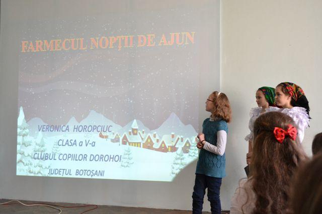Secțiunea ”Creații Artistice – Machete” a avut ca temă ”Iarna pe uliță”, iar Clubul Copiilor Dorohoi a fost reprezentat de elevii: Ștefania Horopciuc (clasa I), Alexandra Murariu, Anamaria Cărăușu și Matei Ifrim (clasa a IV-a). Grupul coordonat de prof. Irina-Maria Miron a obținut Premiul I.
