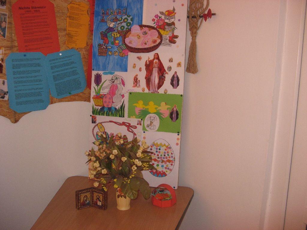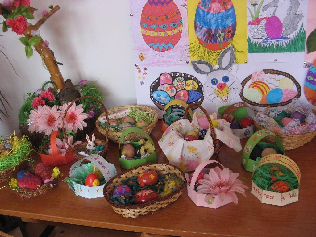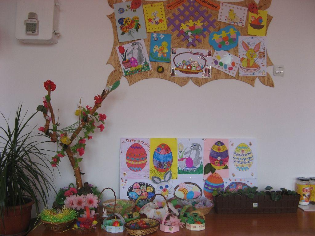 Organizaţi în echipe elevii au realizat decorative cu ocazia sărbătorii pascale: colaje, desene, coşuleţe şi au încondeiat ouă. De asemenea elevii talentaţi au recitat poezii cu ocazia apropierii sfintei sărbători. Convinşi fiind că Paştele este cea mai importantă sărbătoare care ne ajută să fim mai buni, elevii au lucrat cu plăcere într-o atmosferă plăcută asigurată de un fond muzical adecvat sub atenta îndrumare a profesorilor: Saviuc-Pinteală Lavinia, Crihan Brânduşa, Baboi-Drăgan Luminiţa, Pânzaru Ecaterina, Angheluş Marcel, Buhaschi Ludmila şi Tiulea Sonea.