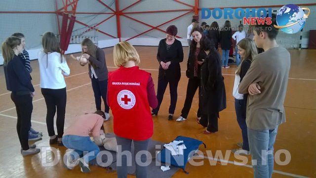 În sala de sport a colegiului, 46 elevi și 11 cadre didactice au participat la cursul de prim ajutor organizat de reprezentanții de la Crucea Roșie. La finalul activității fiecare cursant a primit certificatul de membru și câteva materiale informative.