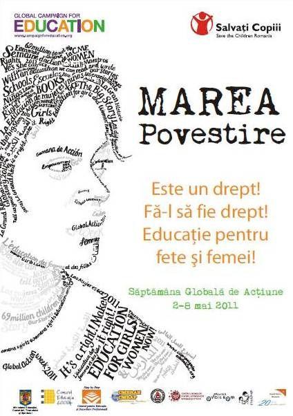 Campania Globală pentru Educaţie este un eveniment desfăşurat anual, la nivel mondial, de o coaliţie de organizaţii non-guvernamentale, sindicate şi grupuri de cetăţeni din întreaga lume şi care, începând din anul 2001, este coordonat în România de organizaţia Salvaţi Copiii. La nivel naţional, Organizaţia Salvaţi Copiii intenţionează ca, în cadrul campaniei din acest an, să pună accentul pe consecinţele neparticipării la educaţie a femeilor şi fetelor, abordând legătura dintre această neparticipare şi fenomene cum ar fi traficul de persoane, egalitatea de şanse pe piaţa muncii, mortalitatea şi morbiditatea infantilă, abandonul copiilor în maternităţi şi spitale etc.