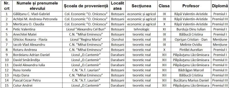 Felicitări elevilor şi profesorilor îndrumători pentru rezultatele obţinute!