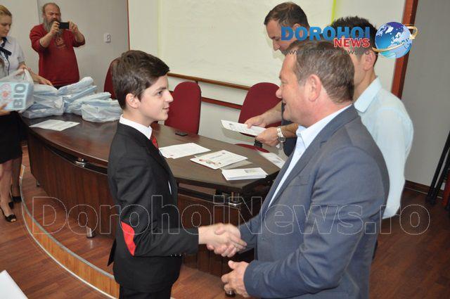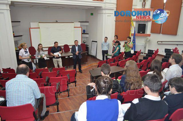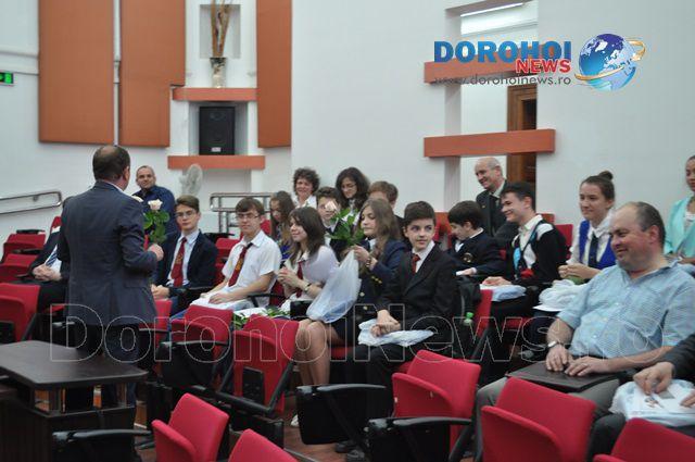 Aici au fost invitați 19 elevi din Dorohoi, olimpici la fazele naționale ale Olimpiadelor Școlare, care au fost premiați de către primarul Dorin Alexandrescu și viceprimarul Lucian Topalagă.