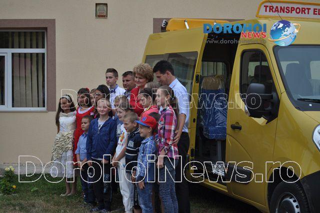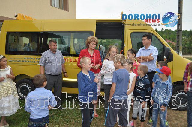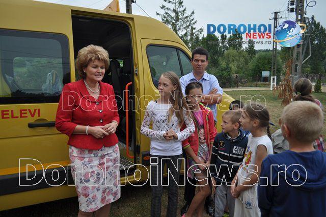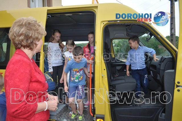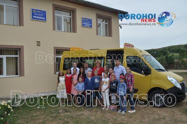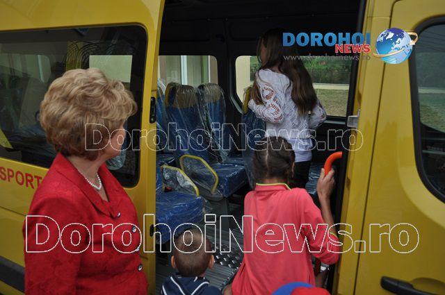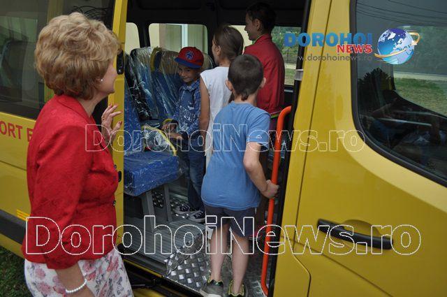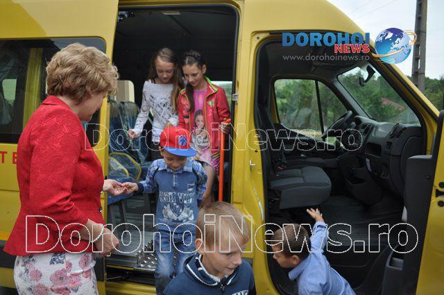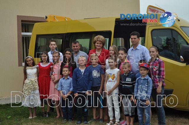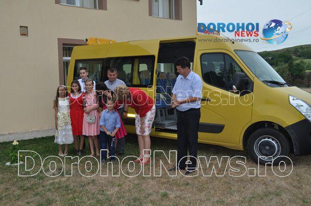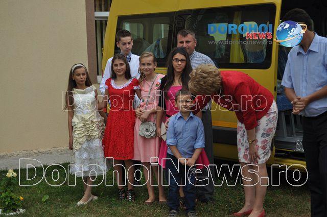 Aici, Mihaela Huncă a fost întâmpinată pe lângă oficialitățile comunei și de un grup de copii care erau foarte fericiți de faptul că au primit acest microbuz. Imediat ce i-au mulțumit șefei IȘJ Botoșani, copiii nu au mai rezistat și au intrat în microbuz pentru a-l analiza.