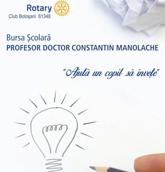 Pentru sprijinirea elevilor cu performante , Clubul Rotary Botosani continua proiectul „Ajuta un copil sa invete” acordand si pentru anul scolar 2015-2016 un numar de doua burse scolare „PROFESOR DOCTOR CONSTANTIN MANOLACHE“.