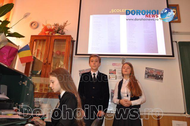Activitatea a fost propusă de către prof. Vlăescu Valerian şi prof. Bordianu Cristina, diriginţii claselor a VII-a A şi respectiv a VI-a A, cu sprijinul elevilor: Rebenciuc Tudor, Condurache Flavia, Rotariu Tudor, Ignat Andra, Agachi Miruna, Căruntu Denisa, Barbacariu Alexandra, Rebenciuc Mara, Doboş Silviu, Stratan Eduard şi a d-nei prof. Saucă Liliana.