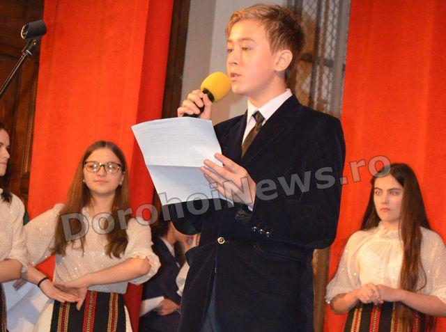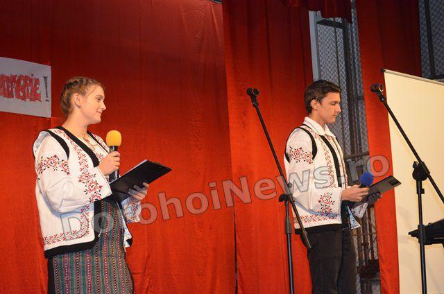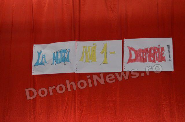 În sala de spectacole a municipiului Dorohoi, miercuri, 02.12.2015, a avut loc un spectacol-concurs parte a proiectului educativ „1 Decembrie – Ziua românilor, Ziua Dorohoienilor”.