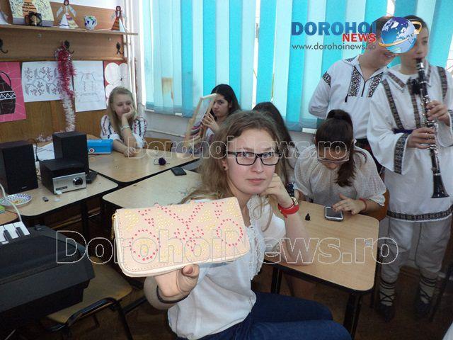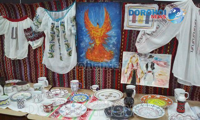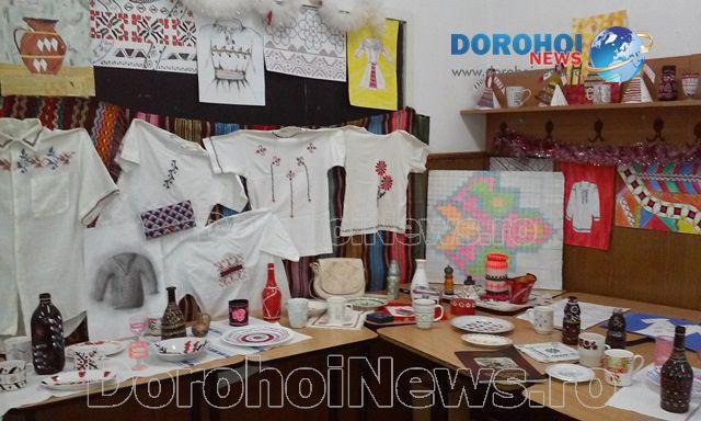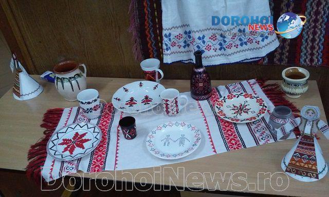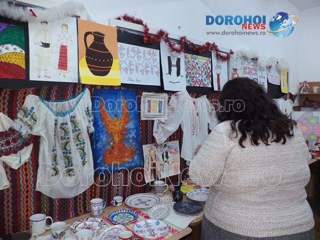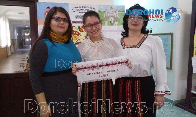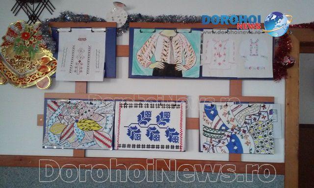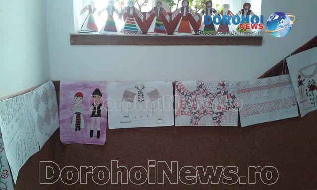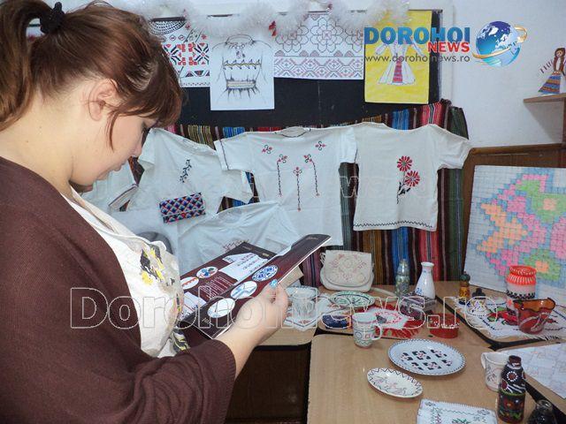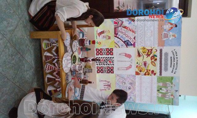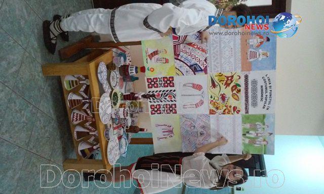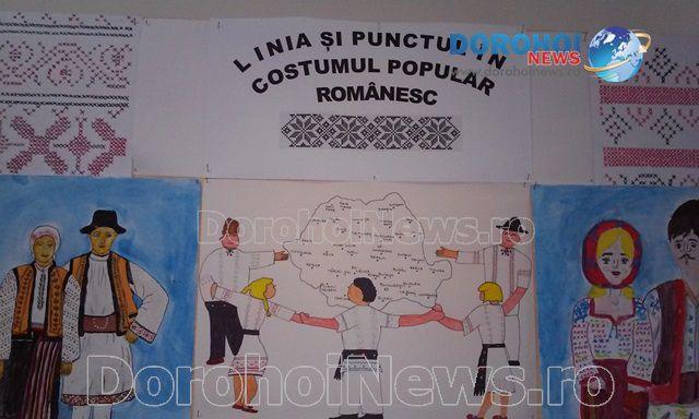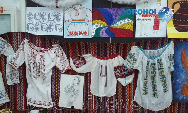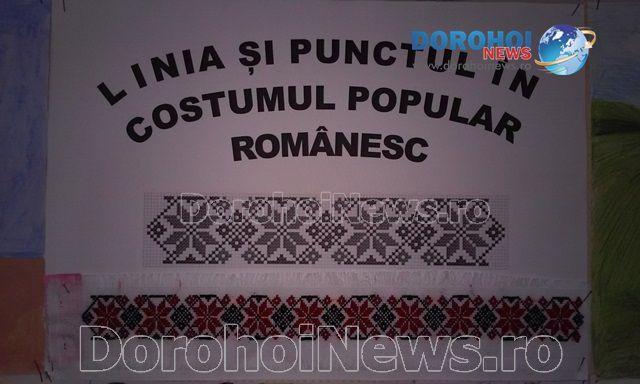După activitatea practică participanții au fost invitați să vizioneze expoziția cu același titlu „Linia și punctul în costumul popular românesc”. Exponatele sunt lucrări realizate cu elevii școlii, dar și cu elevii claselor a IX a și a X a de la Liceul „Regina Maria” Dorohoi, unde doamna profesor își desfășoară o parte din activitate.