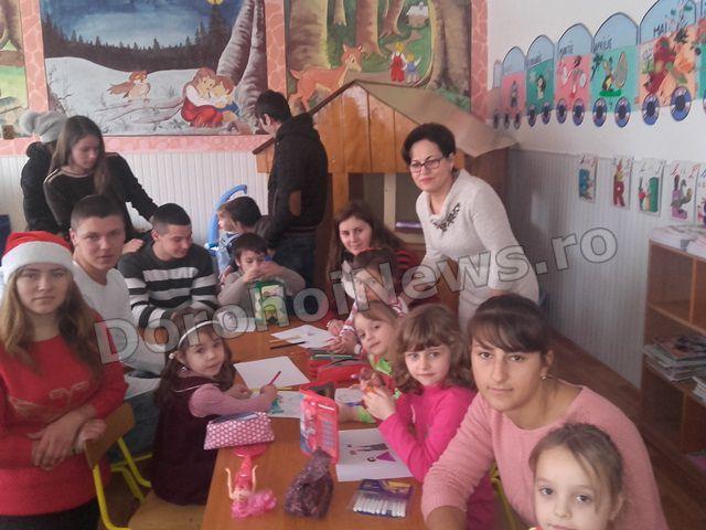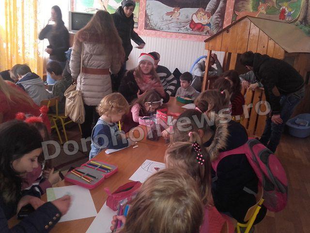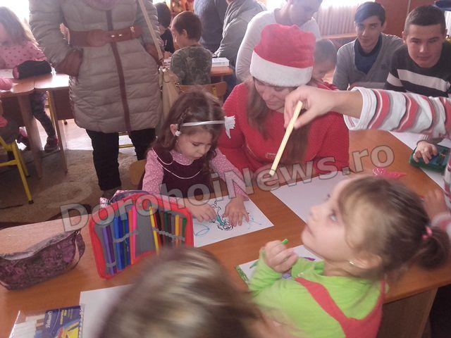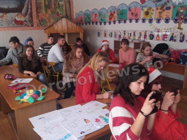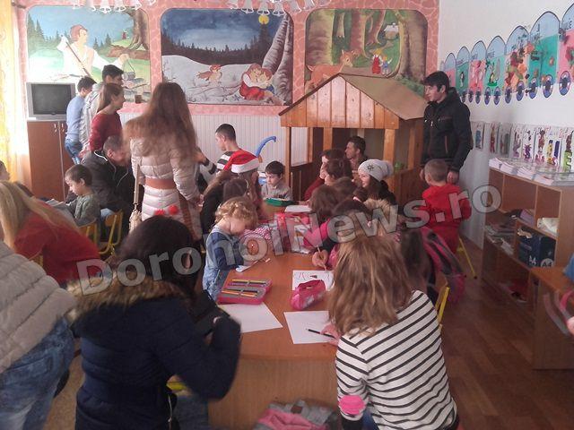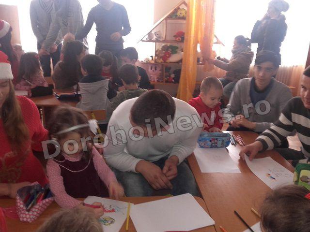 Cu această stare de spirit a Crăciunului care se apropie și dând dovadă de o mare generozitate elevii clasei a XII-a a Liceului Regina Maria Dorohoi, împreună cu d-na prof. Alina Alupoaiei, au fost alături în aceste zile premergătoare sărbătorii Nașterii Domnului de copiii grupei Licuricii de la Grădinița Nr. 8, îndrumați de prof Camelia Ursea. Momentul sosirii acestora, pe ritmuri de colinde, a fost unul oportun pentru prichindeii care tocmai încercau prin desen să transmită dorințele lor Moșului. Si-au continuat desenele, dar de această dată, cu ajutorul celor mari dorințele lor au început să prindă contur.