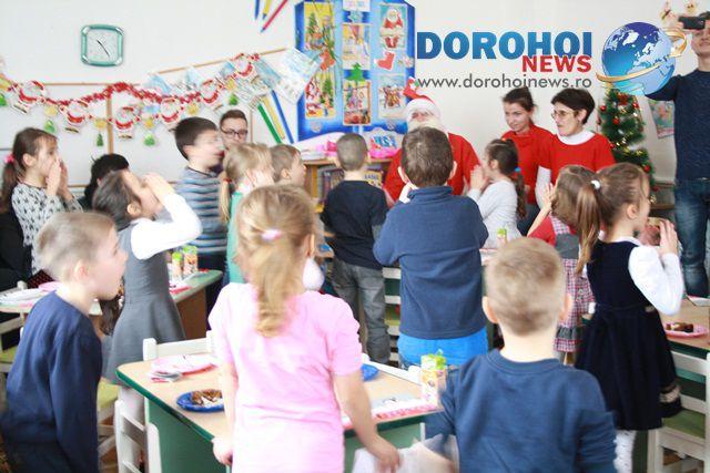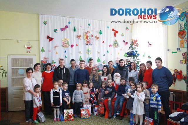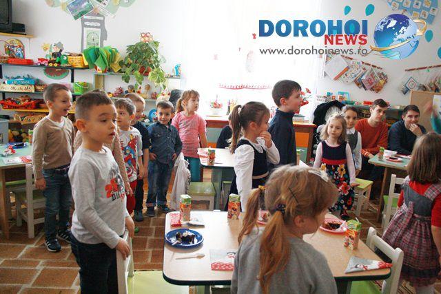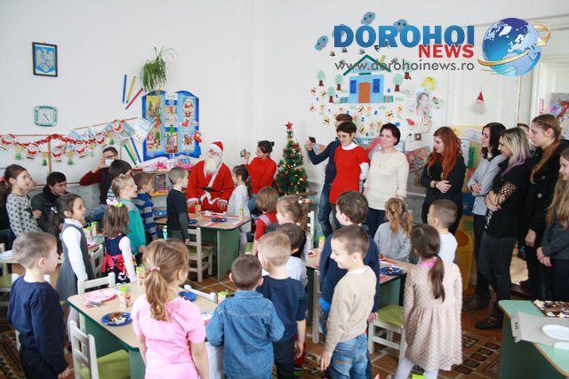 Elevii clasei a XII-a F de la Colegiul Naţional „Grigore Ghica” Dorohoi conduşi de doamna dirigintă, prof. Mihaela Hură, fiind mesagerii moşului, au făcut o mare bucurie copiilor din grupa „Fluturaşilor”, le-au împărţit daruri, au cântat colinde şi s-au bucurat împreună.