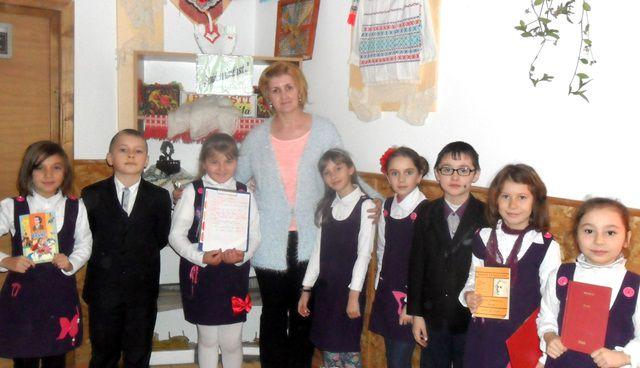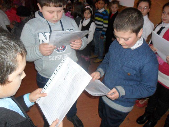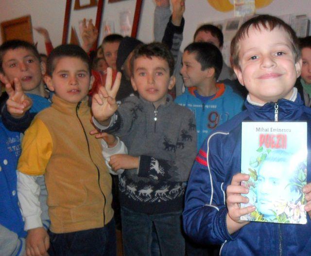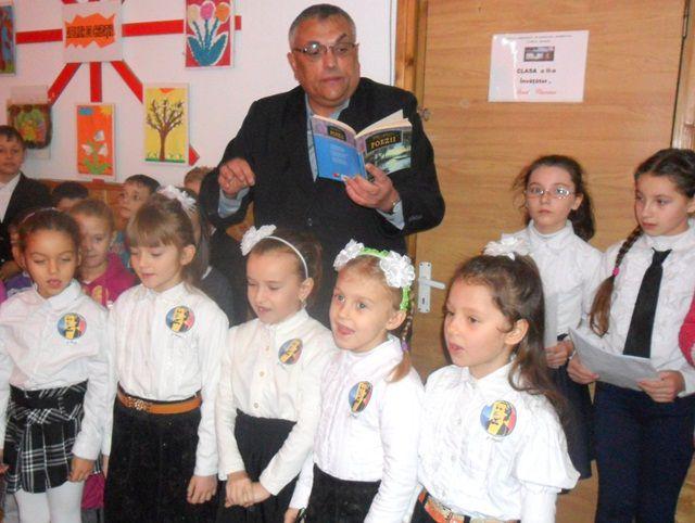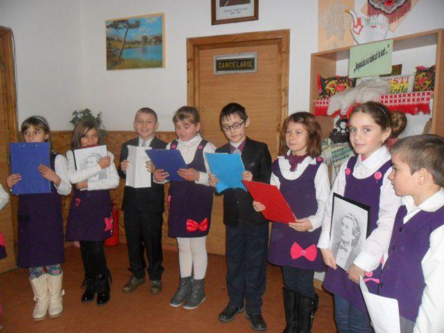Elevii clasei a II a au organizat concursul „Cine titlul îl ghicește, / O carte în dar primește”. Au citit fragmente din poeziile cunoscute scrise de Mihai Eminescu, iar câștigătorii nu au întârziat să apară. Cu drag i-au premiat pe colegii lor, mai mari sau mai mici, cu cărți aduse din biblioteca personală. Dacă priveai pe geamurile aburite ale școlii, îți spuneai în gând: „Iarna-i ici, vara-i departe”, iar dacă priveai ochii senini din sală înțelegeai că „Totu-i vis şi armonie” .