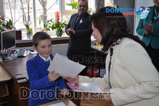 Alături de aceştia, alţi 11 elevi au obţinut tot premiul I, 9 elevi - premiul al doilea, 19 elevi – premiul al treilea şi 22 au obţinut menţiuni. Cei mai mulţi elevi provin de la Şcolile Gimnaziale „Spiru Haret” şi „Mihail Kogălniceanu”, dar şi de la Darabani, Dumeni, Mileanca şi Suharău. Premiile au fost înmânate de către doamna inspector Daniela Vicol.