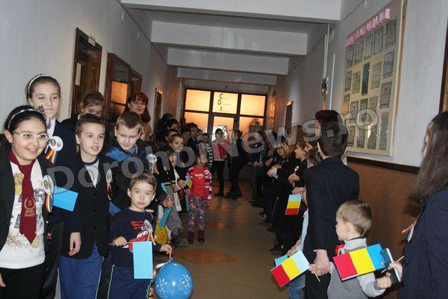 Împreună, educatori şi învăţători, am încercat să facem din acest mare eveniment istoric o zi înălţătoare de dragoste şi preţuire a valorilor patriotice. Elevii claselor a IV-a conduşi de doamnele profesoare Agafiţei Milica, Caia Iulieta şi Rotariu Angelica şi preşcolarii Grădiniţei cu P.P. nr. 6 Dorohoi îndrumaţi de doamnele profesoare Dupu Mariela şi Boariu Dorela, prin activităţile comune desfăşurate („Prezentarea importanţei zilei de 24 ianuarie 1859” - PPT, „Unirea văzută prin ochi de copil” -realizarea unor creaţii plastice şi practice, „Hai să dăm mână cu mână!” – dans Hora Unirii) au reuşit cu multă uşurinţă să trezească sentimente înălţătoare de dragoste şi preţuire a valorilor patriotice şi tradiţiilor specifice poporului român, să cinstească eroii noştri.