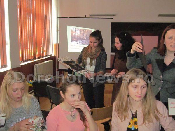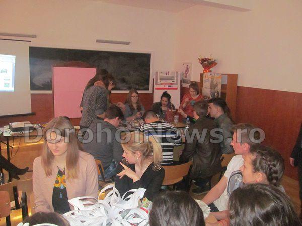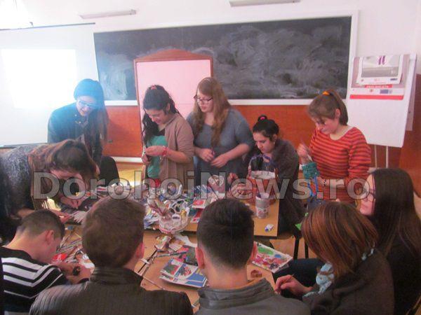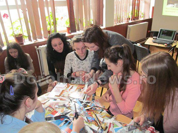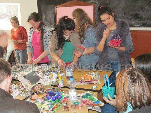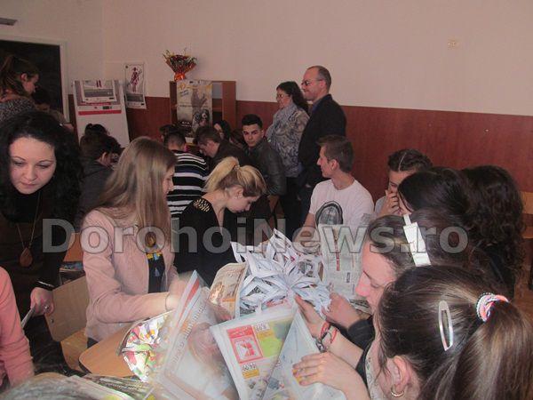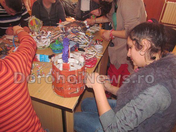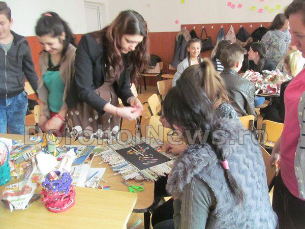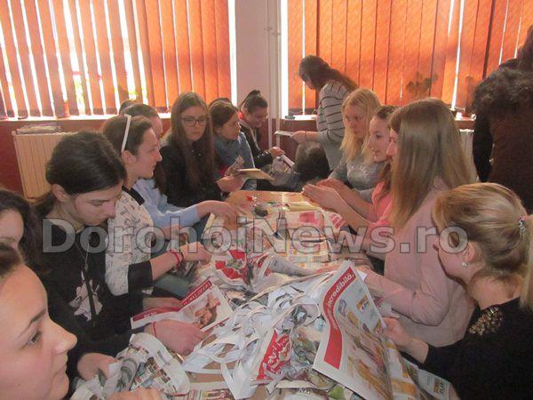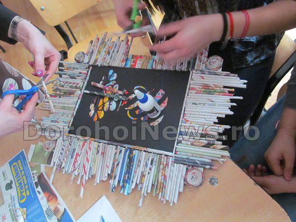 Activitatea a continuat cu un atelier de lucru în care elevii au prelucrat manual ziare şi reviste şi le –au transformat în plicuri şi genţi complet funcţionale. Atelierul a presupus îndemânare din partea elevilor care au tăiat bucăţile de hârtie, le –au împletit şi le-au cusut obţinând astfel accesorii handmade care în ultimul timp sunt foarte căutate şi promovate. Întreaga activitate de la Liceul Tehnologic „Elie Radu” Botoşani a fost condusă de prof. Vieru Roxana. (Prof. Gurzu – Timofti Lucia – coordonator şcolar SNAC)
