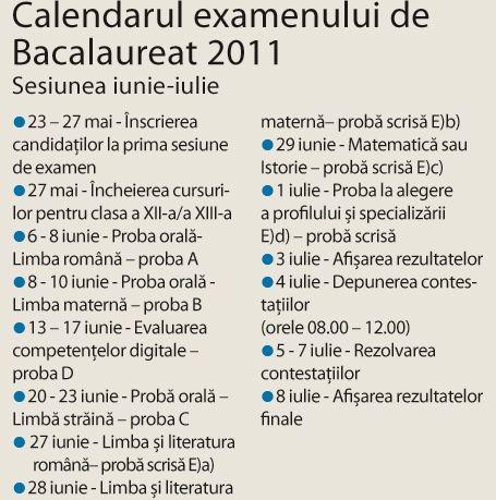 Luni are loc proba orală la limba română, prima din seria examentelor de bacalaureat din acest an. Până în 1 iulie, absolvenţii de liceu vor da examen la cinci probe, iar în 8 iulie se afişează rezultatele finale.