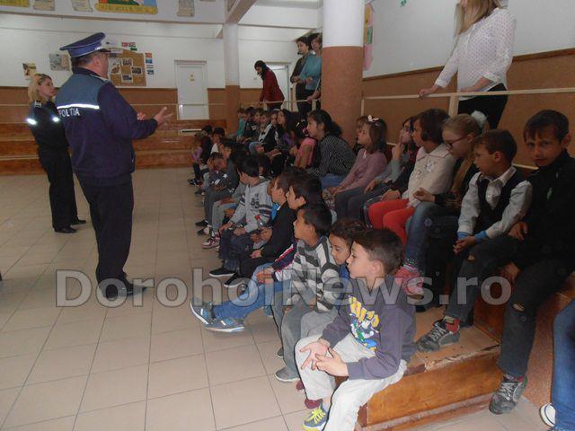 „Știm să circulăm corect!", prin desfășurarea unor jocuri de circulație rutieră, discuții cu polițiștii de proximitate, explicarea normelor de conduită pe drumul de la școală spre casă și retur, în mijloacele de transport în comun, vizionarea unor prezentări în format electronic despre indicatoarele de circulație rutieră;