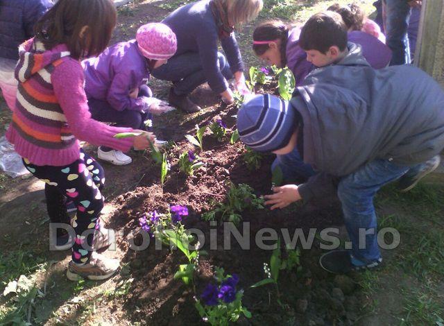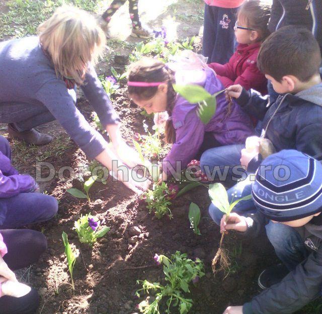 Urmand exemplul colegilor din clasele de gimnaziu, care in urma cu o spatamana au fost la plantat copaci, cei mai mici elevi ai Scolii Gimnaziale Nr.1 Dorohoi, din clasa I, au dorit ca in ultima zi din „Saptamana altfel” sa planteze flori in fata scolii.