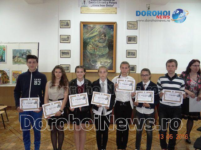Premiul I: Flișcu Delia, clasa a VII-a, Școala Gimnazială „Ștefan Cel Mare” Botoșani, profesor îndrumător Cojocariu Gina-Emanuela;