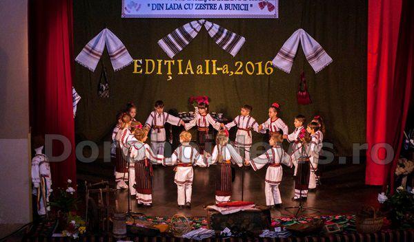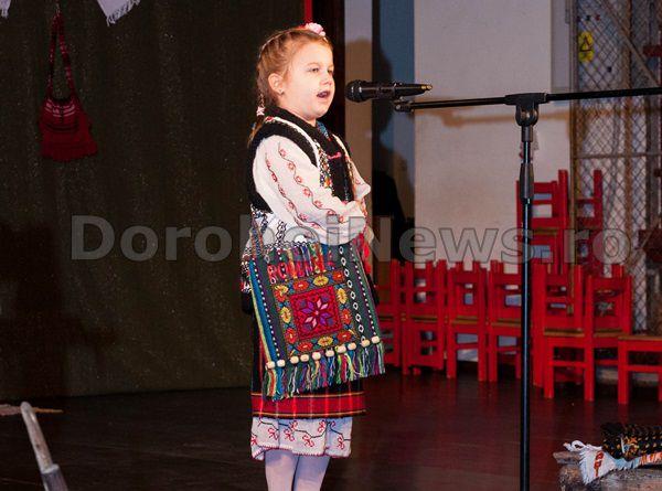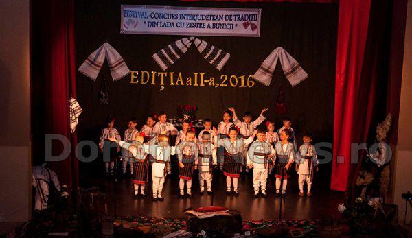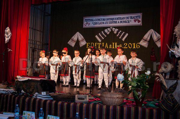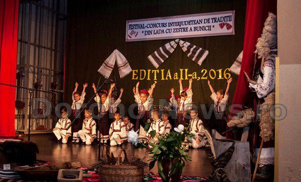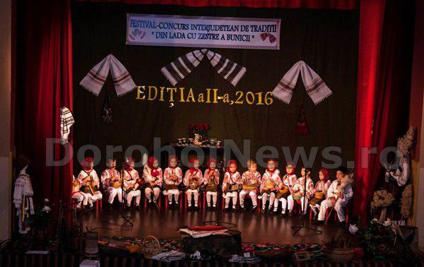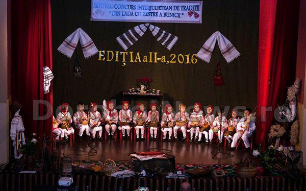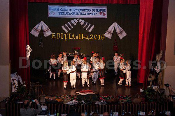 Fascinantul univers al tradiţiei a reunit pe scena Sălii Tetrului formaţii de dansuri populare, grupuri vocale, solişti, participări reprezentative sub formă de şezătoare din Grădiniţele Nr. 4, 6, 8, “Albă ca Zăpada”,”Ştefan cel Mare şi Sfânt” ,10 Dorohoi,Grădiniţele Nr. 6,18,19, 23 şi “Şotron” Botoşani,Grădiniţele din Stroieşti, Ştiubeni, Brăieşti, Pomârla. Numărul participanţilor fiind numeros, peste 360 de copii.