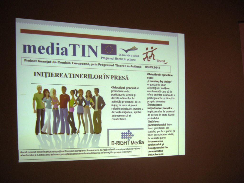 Asociaţia B-Right Media a organizat joi primul workshop în cadrul proiectului “MediaTIN – Iniţierea tinerilor în presă”, finanţat de Comisia Europeană prin programul Tineret în Acţiune.