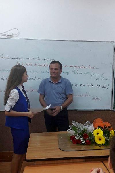 Întâlnirea a căpătat dimensiunile unui eveniment special pentru toți cei prezenți: d-l director Enea Leonid, d-na director adjunct Mihai Iordana, d-l Vlăescu Valerian, elevi ai claselor V-VIII, profesori, părinți.