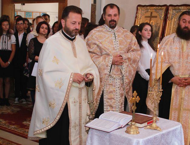De asemenea Părintele Director a dat citire mesajului Preafericitului Părinte Daniel, Patriarhul Bisericii Ortodoxe Române, cu prilejul deschiderii anului şcolar 2016-2017, care îndeamnă la „intensificarea cooperării dintre Familie, Biserică şi Şcoală, pentru a cultiva valorile perene ale persoanei dincolo de modelele efemere ale vremii, spre a dezvolta libertatea unită cu responsabilitatea şi fericirea personală unită cu solidaritatea comunitară. (…) Sfântul Sinod al Biserici iOrtodoxe Române a declarat anul 2016 „An omagial al educaţiei religioase a tineretului creştin ortodox” şi „An comemorativ al Sfântului Ierarh Martir Antim Ivireanul şi al tipografilor bisericeşti”, care au unit bucuria credinţei cu lumina culturii. Copiii şi tinerii doresc să fie iubiţi şi săiubească, să crească afectiv, intelectual, spiritual şi fizic, printr-o educaţie adecvată. De aceea, ei au nevoie să fie ascultaţi şi încurajaţi, dar şi ajutaţi şi îndrumaţi, mai ales când idealul lor sincer se întâlneşte cu realitatea dură a contextului social cotidian, când creşterea şi maturizarea lor înseamnă efort intelectual şi fizic, speranţă şi perseverenţă.”