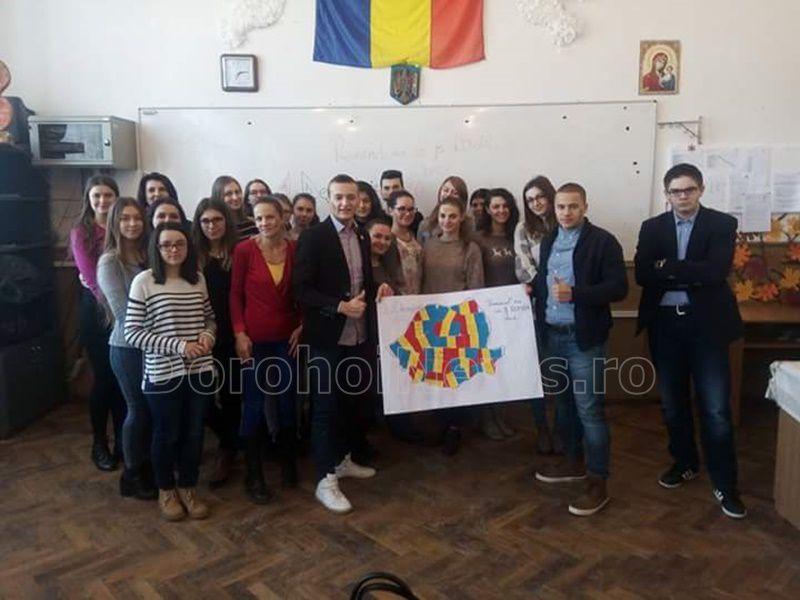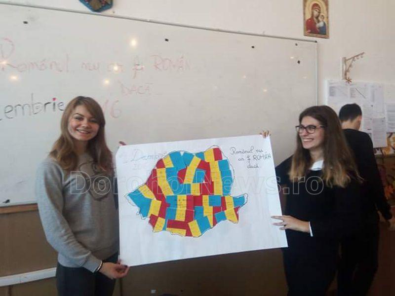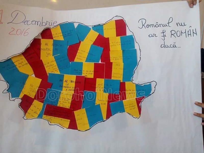 Marti, 29 noiembrie 2016, in clasa a 11-a D de la Colegiul National „Grigore Ghica" Dorohoi s-a desfasurat o activitate legata de Ziua Nationala a Romaniei. Mai precis, elevii acestei clase au raspuns unor intrebari legate de istoria Romaniei dar si de vestigiile culturale existente in tara noastra apoi au facut si o harta a Romaniei formata din stegulete pe care era scrisa continuarea celebrei fraze "Nu esti roman daca nu...".