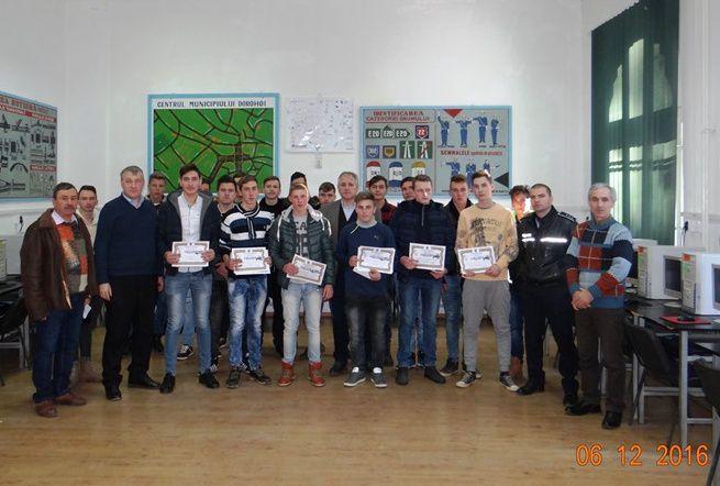 La concurs au participat elevi din învățământul profesional de la Liceul Tehnologic Alexandru Vlahuță Șendriceni pregătiți de prof. Bunduc Tudor, Liceul Dimitrie Cantemir Darabani pregătiți de prof. Petrescu Stelian Dan și Liceul Tehnologic Petru Rareș Botoșani pregătiți de prof. Mardare Ioan. Din partea Poliției Dorohoi a participat în comisia de evaluare inspestor principal Turcu Tudor.