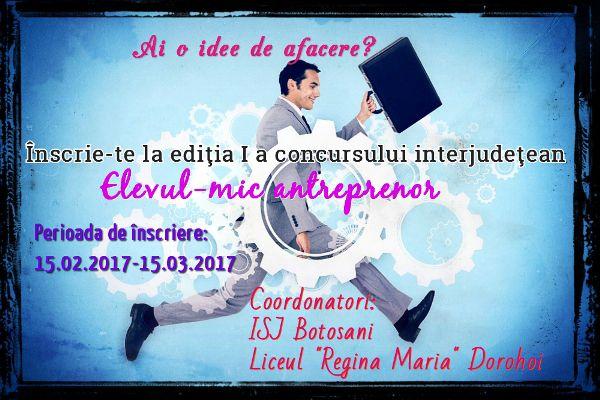 Având ca scop pregătirea elevilor pentru viaţă şi încurajarea acestora să demareze o afacere proprie după finalizarea studiilor, fie ele liceale sau superioare, Liceul „Regina Maria Dorohoi” şi Inspectoratul Şcolar Botoşani lansează Concursul şi Simpozionul Interjudeţean „Elevul – mic antreprenor”.