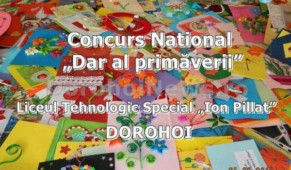 Liceul Tehnologic Special „Ion Pillat” Dorohoi, jud. Botoşani vă invită să participaţi la Concursul Naţional „Mărţişorul, dar al primăverii !" - ediţia a VII-a, concurs propus în CAEN - 2017. Lucrările (mărţişoare, felicitări, pictură, grafică - desen, colaj, împletituri) se trimit până la data de 25 .02.2017.
